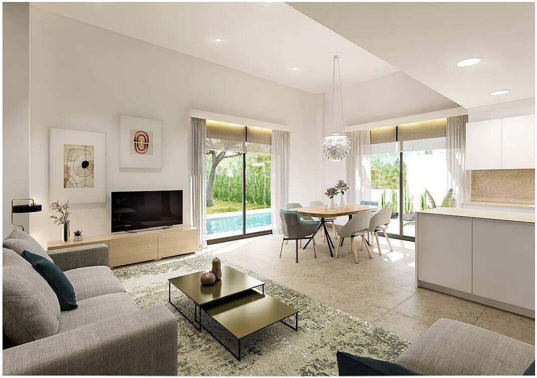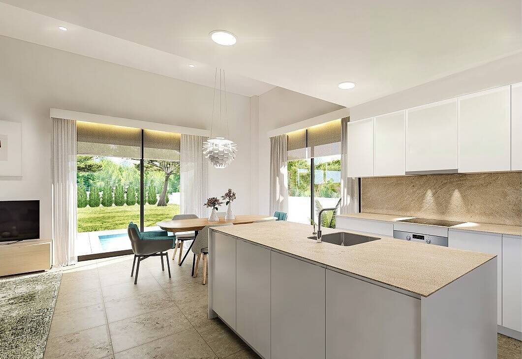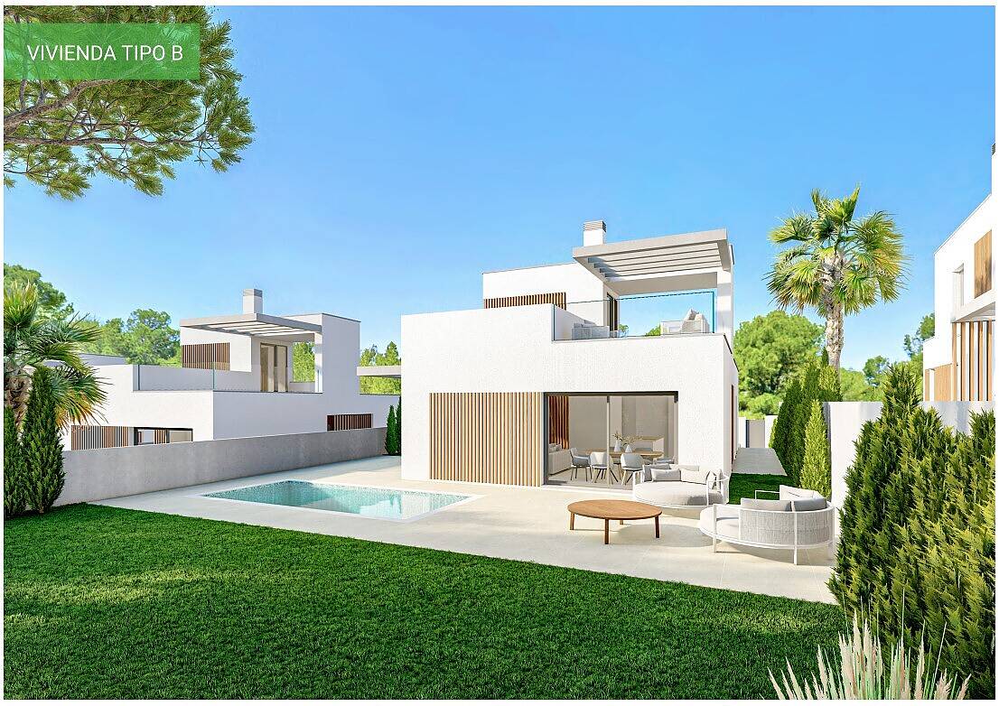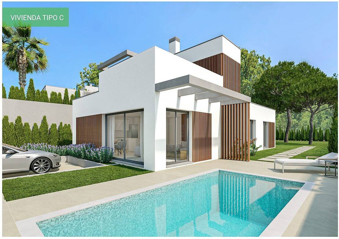 Nowoczesne wille charakteryzują się wspaniałymi funkcjami i praktycznym, śródziemnomorskim designem. Wille posiadają przestronne ogrody z basenami i tarasami, a niektóre modele wydzielono garaż podziemny z miejscem do przechowywania. Wnętrze obejmuje wygodny salon z toaletą i nowoczesną kuchnią na planie otwartym obok jadalni, 3 sypialnie z dużymi szafami oraz 2 łazienki. Na pierwszym piętrze znajduje się piękny taras z otwartym widokiem na miasto i plażę.
